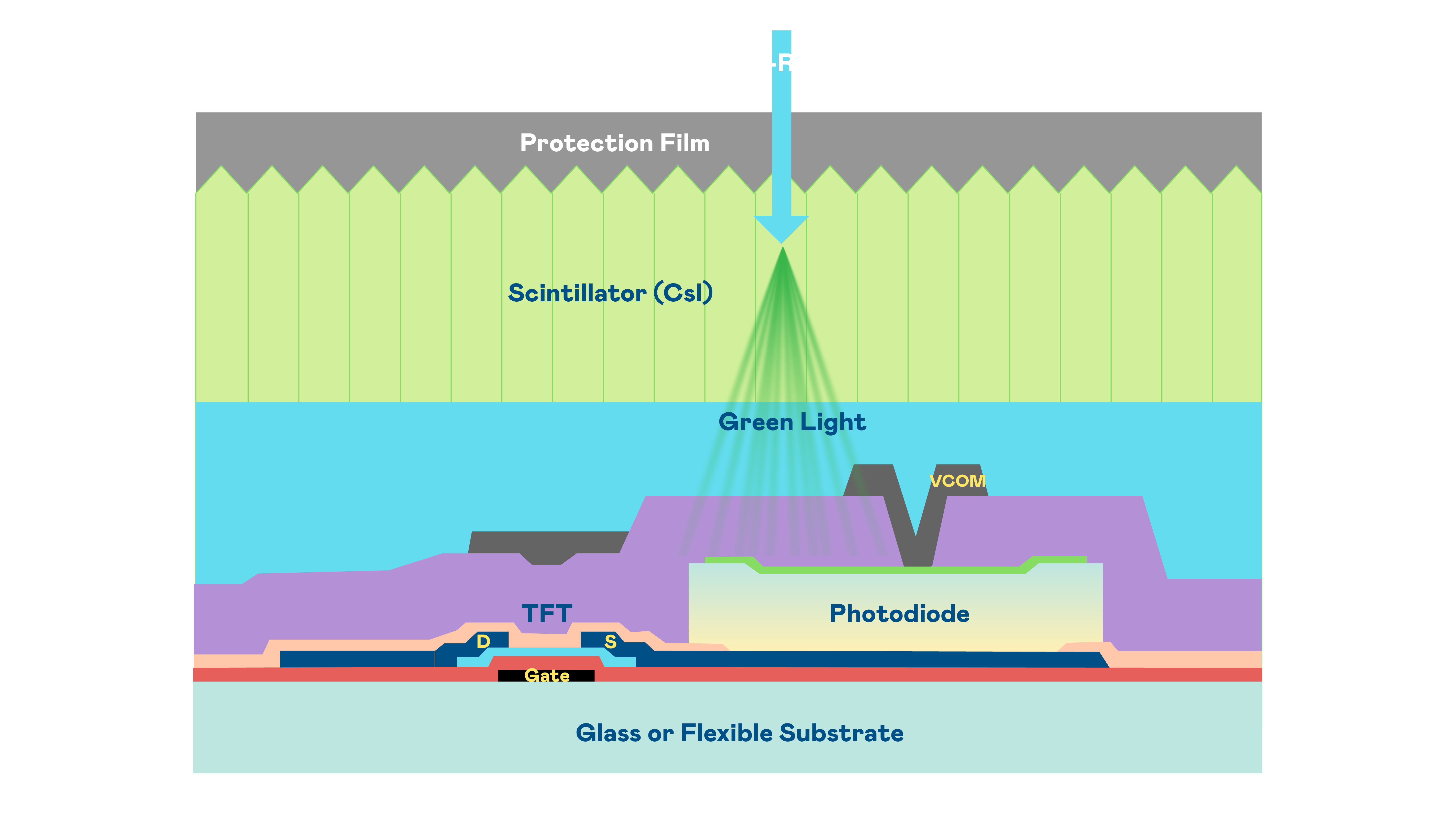 wepoker微扑克的X光影像感测阵列使用薄膜电晶体 (TFT) 作为每个像素的读取开关,搭配光电二极体(Photodiode)的光电转换元件,用以感测X光影像讯号。